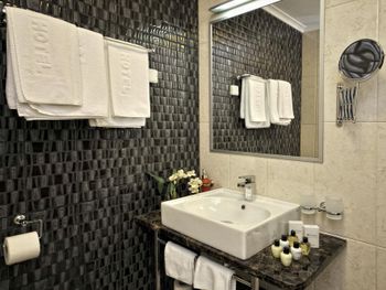 Предполагала что будет наличие ванной, а не душевой кабины, вода из которой все время заливала пол. Блюда в ресторане на ужин не самый лучший вариант, рыба периодически пересушена, пища жирная. Кофе оставляет желать лучшего.
