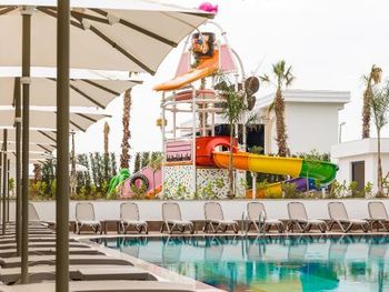 Несколько бассейнов (огромный главный бассейн, 2 детских, 1 взрослый, 1 крытый, 1 тихий);