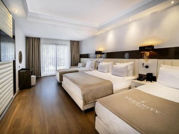 В распоряжении гостей Serenity Queen Hotel — гостиная зона и собственная ванная комната с биде, бесплатными туалетно-косметическими принадлежностями и феном. Также среди удобств есть кондиционер, телевизор с плоским экраном со спутниковыми каналами и сейф. В собственной ванной комнате есть душ, тапочки и халаты. Гостям Serenity Queen Hotel предоставляются постельное белье и полотенца.