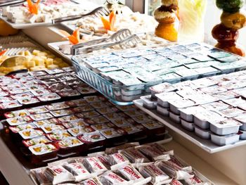 Завтрак обычный и не разнообразный. Есть много мезе и сладостей, но это не еда. Самой еды два-три вида и все.