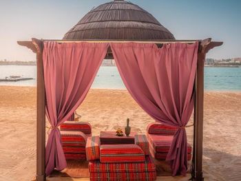 Ужасный пляж: море все в водорослях, вода стоячая и мутная, если вы рассчитываете на пляжный отдых, то это точно не в этом отеле; лежаки старые.
