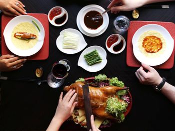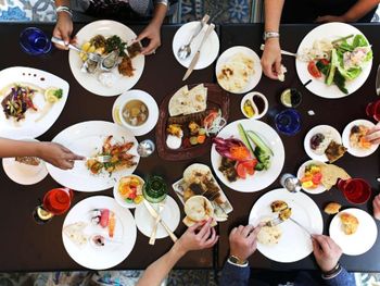 В отеле Shangri-La есть несколько ресторанов, таких как Shang Palace, где готовят традиционные блюда китайской кухни. До и после ужина в баре Al Hanah, где царит уютная атмосфера, можно заказать напитки.