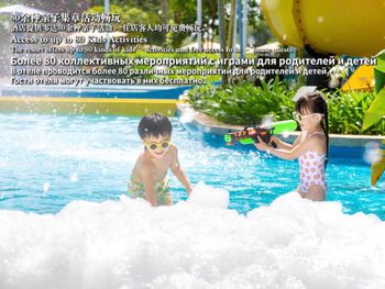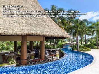Очень хорошая слышимость через входную дверь, слышно как люди проходят, многие с детьми рано утром встают и очень громко кричат, разговаривают. Депозит 6500юаней на два дня за два номера. Сняли с Карты, надеюсь вернутся без проблем как они и сказали через 2-5 дней. Детские игровые зоны платные с 5 до 12 лет. В детском бассейне отклеивается покрытие прорезиненное. Рядом в шаговой доступности нет кафе и магазинов, надо идти до Арены (там очень дорого, один пакет продуктов в 3,5тыс руб вышел). Через дорогу по правую сторону есть кафе местное, на пальцах и с помощью переводчика заказывали, рядом с ним продуктовые магазины с нормальными ценами. Но все равно манго на 30 юаней вышло, а ананас на 20. Три года назад все намного дешевле выходило