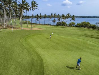Гольф - все классно организовано и очень недорого. Играли втроем 9 лунок, 2 кедди, 2 гольфкара, мячи, клюшки, драйвинг рэндж - за все 200 долларов. Очень приветливый персонал, не тупят, хорошая еда, разнообразная, ухоженная территория отеля.