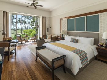 Шикарный топовый уровень отеля, все просто отлично. Еда и особенно завтраки просто бомба, на завтраках: свежевыжатые соки, фрукты, креветки в диких количествах, европейское меню, индийское, ланкийское, азиатское меню, на завтраках есть все, я первый раз вижу такие завтраки. В отеле моют и чистят все, всегда, без остановки. Персонал это стопроцентное достоинство отеля. ОООчень обходительный персонал и главное это у них получается как-то искренне и ненавязчиво, с шутками и юмором. Чтобы понимать, вам делать ничего не нужно будет, абсолютно, любой звонок, любое слово или проблема, будут решены. Отель устраивает коктейльные вечера в президентских люксах, где общается с клиентами, чтобы узнать мнение. По любым вопросам отель идёт на встречу. Пляж шикарный, если говорить о пляже с бассейном, есть 3 бассейна на территории, детский, взрослый (веселый) и пенсионерский (чилаут). Океан здесь всегда буйный, волны, но мы купались, Внимание! дети купаться не смогут. На пляже песок черно-красный, вулканический. Зона отдыха около бассейнов, шикарная, вы просто приходите, выбираете пальцем лежак и вам все делают, стелят подушку, полотенце, зонт, дают огурец на глаза, в прикуску арбуз и бесплатную воду. Вода в отеле это отдельный случай, в номер приносили по 5-8 бутылок бутилированной воды, просто в неограниченном количестве. Мы поселились в номере делюкс с видом на сад. Ну просто шикарный номер, все качественное, настоящее чистое, все работает, номер огромный, потолки метров 5, терраса, очень хороший кондиционер, ванна, душ, кровать, просто бомба. Убираются в день по два раза, замена постельного белья по запросу, хоть каждый день. Территория обалденная, чтобы обойти не хватит и 2 недель, гольф-поля, разные игры, лук, петанк, велосипеды, йога, ни за что не надо платить, цветы, пальмы, деревья, животные, все виды ящериц, птицы, Дикое количество варанов, павлинов, попугаев, каких-то цапель и аистов, вы их всех будете кормить с рук))) для детей мне кажется очень круто.