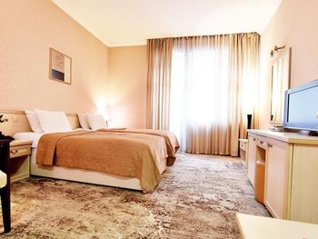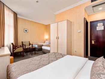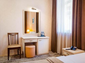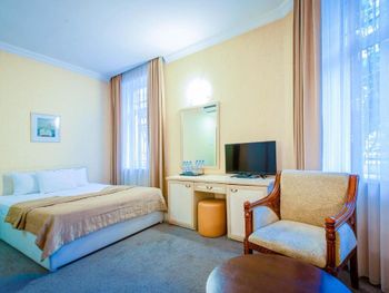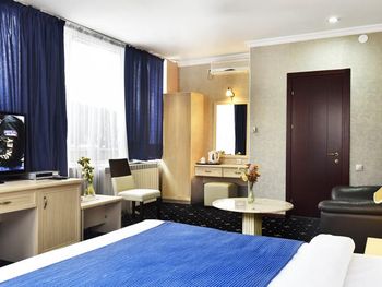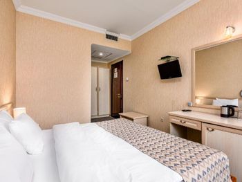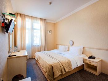 Клопы! в постели ночью стали ползать клопы, как только я улегся в кровать, и собирался лечь спать!!! Впервые с таким столкнулся, даже загуглил как выглядит постельный клоп, и сомнений уже не осталось, а подняв матрас понял что их там не один. Пришлось срочно среди ночи уехать из этого места. На стойке ресепшн меня послали, идти со мной в номер и посмотреть на клопов отказались, вернуть деньги тоже отказались. Сама гостиница очень мрачная, интерьер 90-х годов, возможно лет 25 назад она и была неплохой, но сейчас очень уставшая и устаревшая, все старое и обшарпанное, видавшее виды (не убитое там только лобби на 1 этаже и лифт). В номере воняло затхлостью, и проветрить этот запах никак не удалось. Очень тусклый неуютный свет, светильник не работал, дешевый ТВ , пульты завёрнутые в пленку, приделанный на клёпки кусок дверного проёма возле замка (свидетельство того что однажды в этом номере выламывали дверь - неприятный момент). Вид из окна вплотную на какую-то старую облупившуюся заброшку с темнотой в окнах, до которой 5 метров расстояние, наверное. Само здание отеля в принципе стоит впритык к другим постройкам, нет ни собственной территории ни дворика