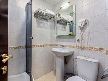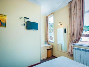 + Исторический центр, рядом и большинство достопримечательностей, и магазинчики. У нас вид был прямо на статую Мать-Грузия. Находится в отремонтированном здании. + Относительно чисто в номере. + Есть стандартные расходники — гели, мыло, бутылки воды, зубной набор, тапки. Чая/кофе не было.
