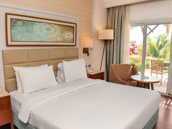 Хороший номер, но при заселении оказался очень грязным. Пыль лежала клочьями. Как будто о номере забыли на много лет... Но после обращения на ресепшен, в номер пришла бригада из 4 человек. Все вымыли и номер превратился в отличный комфортабельный и уютный. Первый этаж с видом на тёплый и тихий бассейн. От номера до центрального здания, где проходили приёмы пищи, ориентировочно 5-7 минут прогулочным шагом. Но вы в любой момент можете вызвать бесплатный микроавтобус. Везут, даже если вас двое. Курсирует автобус с утра до 23.00. Но мы чаще гуляли, т к дорога проходит по территории отеля идёшь и наслаждаешься красотой. Питание на 5+. Море и пляж восхитительны! А самое главное, это то, с каким настроением вы приехали!!! Хорошего отдыха и успехов отелю!!!