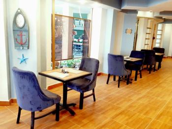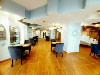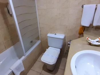 Минусы: 1 - бассейн с очень слабым подогревом, вода холодная, купаться не смогли 2 - чайника в номере нет, принесли только после скандала, хотя до этого весь день кормили завтраками 3 - вайфая в номерах нет, на территории отеля тоже, ловит только на ресепшене (идти туда километр) и то только на ближайших диванах 4 - воду не приносили ни разу, покупали 5-литровую в магазине 5 - шампуней и геля для душа - тоже ничего не было 6 - ужин скудный - подойдёт для аскетов 7 - теннисный корт (из-за которого и бронировали отель) с ужасным покрытием, мячи улетают за бетон, доставать неудобно и дали всего 2 8 - вокруг отеля полнейшая разруха - все магазины закрыты, только на центральной улице что-то есть 9 - вопросами «Вы из Украины?» со всех сторон приводили нас с подругой в бешенство.