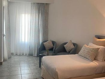 Отель не имеет собственного выхода к морю, а только трансфер на стареньком автобусе к пляжу. Риф на этом пляже почти мертвый , рыбок очень мало. Лежаки в ужасном состоянии. До хорошего пляжа стоимостью 3$ нужно идти пешком 20 минут либо вызывать такси. Прибавляйте это к стоимости , так как в Египет едут исключительно за морем. Так же у отеля нет бесплатного WiFi - за 10$ они предлагают 33гб на 7 дней, который будет плохо ловить в номере с возможностью подключения только одного устройства. Пришлось купить мобильный роутер и сим карту за 25$. При заселении подарил сотруднику размещения 10$ и шоколадку из России. А он в ответ предложил мне завтрак за 5$ , так как при заселении первый прием пищи - это ланч. Заселили в 12:30 в номер с грязной ванной. Тем, кто приезжает по путевкам от агрегаторов, выдают синий браслет. Тем, кто забронировал на букинг , красные. Имейте ввиду , что отношение персонала к вам будет иное в зависимости от цвета браслета. В целом, персонал делает свою работу очень плохо и не искреннее, а чаевые просят. Еда и напитки самого низкого качества. В моей стране такой едой кормят животных. Из алкоголя адекватное только пиво. Вино и коктейли на баре это яд. Бассейн без подогрева. Мини бар пустой. Добило отношение сотрудника ресепшена при выезде, так как у меня в этот день был день рождение - он даже не попрощался.