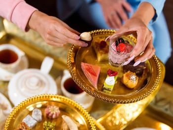 При курортном отеле открыт бар и кафе у бассейна Al Seef, в которых подают фирменные освежающие напитки и закуски. В шикарном ресторане Parisa с изысканной стильной обстановкой и видом на море и залив Доха можно попробовать великолепные современные блюда персидской кухни. В гриль-ресторане Al Liwan предлагают разнообразные блюда в формате «шведский стол», от блюд ливанской кухни до морепродуктов и бранча.