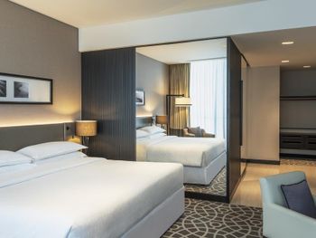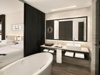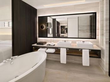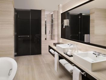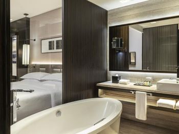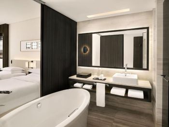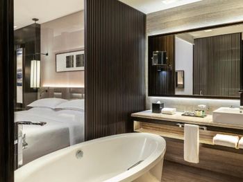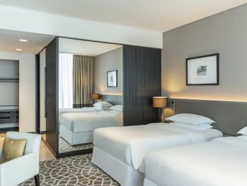 Современные номера гранд-отеля Sheraton Dubai оснащены телевизором с плоским экраном и кофемашиной Nespresso®. В распоряжении гостей фирменные кровати Sheraton Signature Sleep Experience® Собственная ванная комната с глубокой ванной укомплектована туалетно-косметическими принадлежностями Shine Sheraton™.