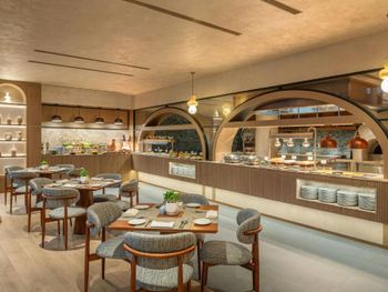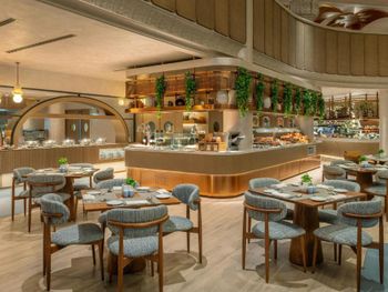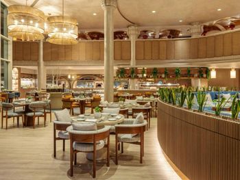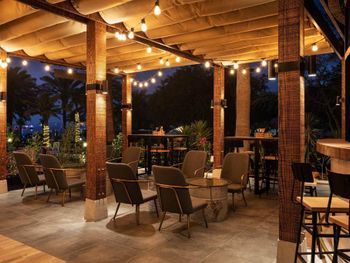 В отеле можно отведать блюда китайской кухни в ресторане Peacock, познакомиться с левантийскими блюдами в ресторане Al Hadiqa и приятно провести время за привычными напитками в спорт-баре Black Goose. Любителям коктейлей на пляже можно обратить внимание на бар Bliss Lounge.