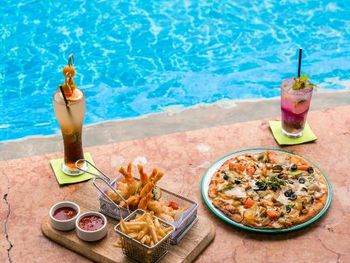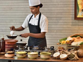 Ежедневно гостям предлагается завтрак «шведский стол», полный английский/ирландский завтрак или азиатский завтрак. При Sheraton Kosgoda Turtle Beach Resort работает ресторан, где подают блюда средиземноморской кухни, пиццу и морепродукты. Гости могут попросить приготовить вегетарианские, халяльные и веганские блюда.