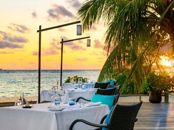 В отеле работают 7 ресторанов и баров. В ChopstiX с видом на бассейн с пресной водой предлагают вкусные азиатские блюда, от домашних пельменей и лапши до традиционных закусок. В элегантном ресторане Sea Salt рядом с пляжем подают блюда из морепродуктов на открытом воздухе. В ресторане Feast шеф-повара готовят интернациональные блюда на открытой кухне. В ресторане Feast также устраивают пользующиеся у гостей большой популярностью тематические пляжные ужины с развлекательной программой, в том числе в такой тематике, как «Мальдивский рыбный рынок» и «Арабская ночь». В ресторане Masala Hut сервируют традиционные блюда северо- и южно-индийской кухни. В ресторане Baan Thai можно заказать блюда традиционной тайской кухни в современном исполнении, а в баре Anchorage с великолепным панорамным видом на Индийский океан подают освежающие коктейли. Ресторан Kakuni Hut славится своими тако и коктейлями.