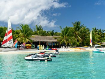 3. Развлечения: есть все! Гидроцикл/таблетка/дайвинг (даже для тех кто никогда не пробовал нырять)/ катание с дельфинами/рыбалка. На территории есть огромный бассейн, а вокруг работают рестораны, всегда можно перекусить и выпить. С алкоголем совсем никаких проблем, его очень много на любой вкус и цвет. Цены приемлимые (0.75л джина стоит порядка 70$).