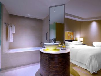 Элегантные номера отеля Sheraton с видом на море и гостиной зоной оснащены мини-баром и 37-дюймовым телевизором с плоским экраном и спутниковыми каналами. В собственной ванной комнате установлена отдельная ванна и тропический душ.