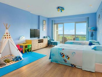 The hotel has 500 guest rooms which are equipped with private balconies with sea, garden and pool views. Rooms provide exclusive children's toiletries including bath gel, shampoo, toothbrush, slippers and bathrobe. Free baby cots and strollers are also provided on a first-come-first-serve basis.