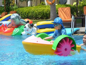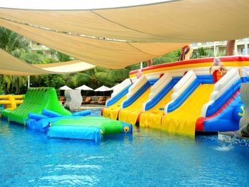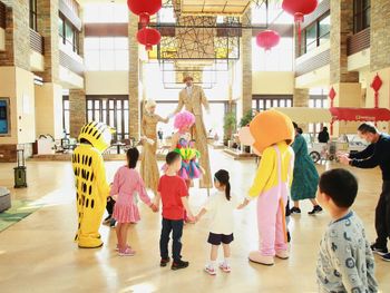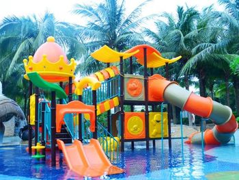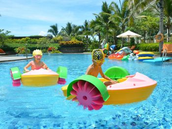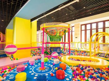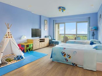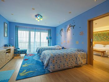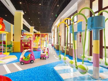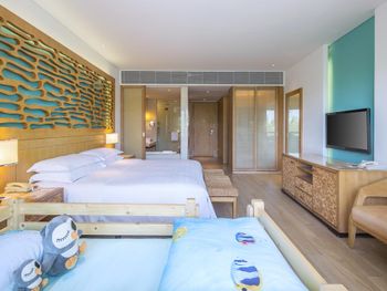 The resort has a 718 square metre children\'s playground with a magician course for children, 11 swimming pools, a farm, a jungle exploration camp, water park, fish pond and a peacock garden. There are also island cute baby playground, parrot theater, family bicycle and dinosaur locomotive for family entertainment during the stay. Trip photo shooting service with professional photographer is also available for guests.
