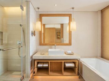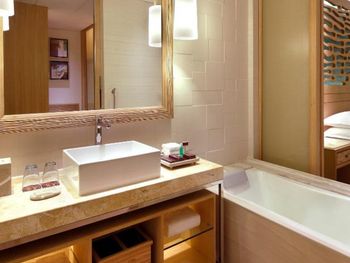 Мы работаем над переводом этого описания на ваш язык. Приносим извинения за неудобства.This hotel is located in Haitang Bay Sanya, a place full of palms, white beaches and abundant sunshine. The beach is a 6-minute walk away. It also features a well-designed lagoon swimming pool, a tennis court, a fitness center, Spa, a children\'s park, a 2500-square-metre camping area, a water park and a zoo.