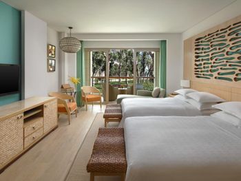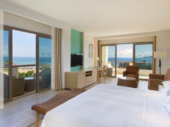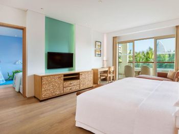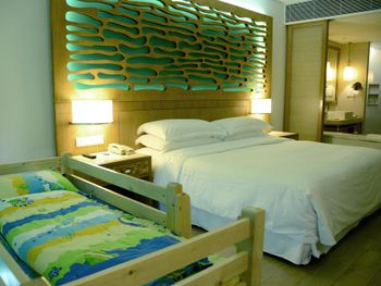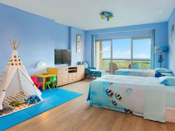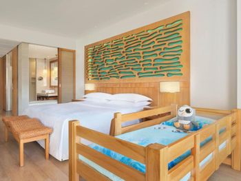The hotel has 500 guest rooms which are equipped with private balconies with sea, garden and pool views. Rooms provide exclusive children\'s toiletries including bath gel, shampoo, toothbrush, slippers and bathrobe. Free baby cots and strollers are also provided on a first-come-first-serve basis.