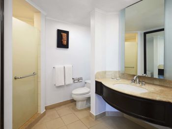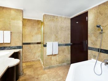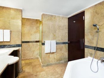 В распоряжении гостей собственная ванная комната с ванной и душем. В числе удобств электрический чайник с бесплатным чаем и растворимым кофе, мини-холодильник и круглосуточная доставка еды и напитков в номер.
