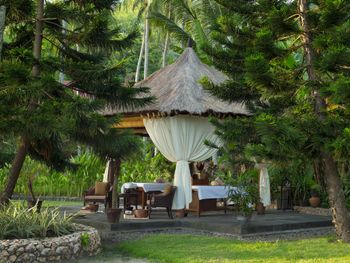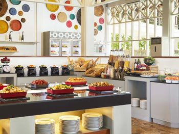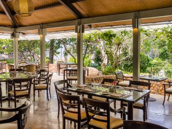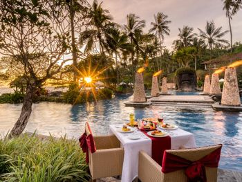 В ресторане Bawang Putih у бассейна подают блюда итальянской кухни. В ресторане Kebun Anggrek, из которого открывается вид на сад, сервируют завтрак. Напитки и легкие закуски можно заказать в ресторане Senja.