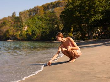 Море - среднепологий спуск в воду, пляж широкий, отличные лежаки под огромным платаном. Между морем и бассейном - 20-30 метров.