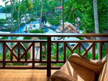 Нам дали 2 смежных номера на 1м этаже с очень удобным выходом из номера прямо в сад. От номера до завтрака - 30 метров, при этом очень уединенные номера со своей террасой, но огороженные зеленью.