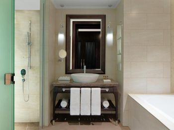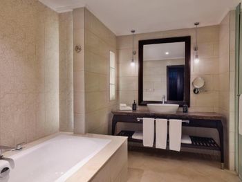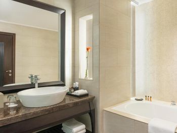 Приехали в отель под утро из-за задержки с прилетом. Менеджер на рецепшне заселял нас минут20 так, что в 4.30 утра к нему образовалась очередь. В номере ковровое покрытие и на нем отчетливо видно какие то крошки, песок и пыль. Вместо 2—х халатов висит один, из комплекта туал принадлежностей (8предметов на 2-х) всего один маленький гель для душа. На рецепшне все мои вопросы записал товарищ из Ср Азии, говорящий по русски, но за целый день никто ничего не принёс. В душе с потолка сыпется штукатурка( фото есть, номер №400). В туалете не работает розетка для фена, вызвал сотрудника, он посоветовал пользоваться розеткой в коридоре. В отеле 5* сушить волосы феном сидя на полу ещё не приходилось!!! На след день приехал в отель поздно вечером и увидел, что уборку в номере не делали вообще. На рецепшне русскоговорящий товарищ Бикзот сказал, что надо было попросить и они бы все сделали! Я высказал возмущение таким отношением персонала, на что он сказал, что если я продолжу «качать права» он вызовет полицию. Я сказал, что согласен на вызов полиции и готов с ней пообщаться, после чего этот Бикзот просто ушёл. Подошедший менеджер отеля услышал мои возмущения, но никаких извинений не принёс, а только вызвал уборщиков, которые в 23.30 пришли делать уборку. Я считаю, что в известной мировой сети такое отношение персонала недопустимо, тем более когда платишь за проживание немалые деньги.