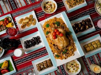 Каждое утро в отеле накрывается континентальный и американский завтрак. В ресторане ближневосточной кухни Arjwan гостям предложат несколько вариантов обеда и ужина. Также можно посетить ресторан морской кухни Marasea, а в ресторане Al Qubtan подаются блюда интернациональной кухни. В баре у бассейна в течение всего дня сервируются закуски, которые можно отведать прямо на месте.