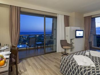 Мы планировали жить в этом отеле 3 ночи в конце самостоятельного путешествия по Турции. Стоимость номера в сентябре была 260 евро за ночь. Номер с джакузи. Впечатления такие: Номер очень темный, уборка ужасная - очень грязные стекла около джакузи, липкие пятна на столе и полу. Само джакузи не работает, только как ванна с глубиной 20 см. Питание очень однообразное - из морепродуктов только один вид жареной рыбы, три вида мяса, и много видов баклажанов. Напитки из порошка, коктейли из местного дешевого алкоголя с добавлением красителя. Если лететь в отель по путевке, то может и нормально будет. Если на контрасте с другой Турцией в самостоятельном путешествии - то ужасный отель. Категорически не рекомендую!