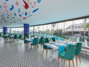 В распоряжении гостей 5 ресторанов, 4 бара и кафе курортного отеля, где вам на открытом воздухе или в помещении подадут блюда турецкой и интернациональной кухни. В барах можно заказать разнообразные алкогольные и безалкогольные напитки.