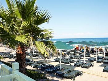 Пляж небольшой, зажат между двумя соседями - Fame Residence и Karmir, и, к сожалению, поначалу лежаков не всегда хватало всем желающим :( к чести отеля скажу, что стоило призвать менеджера и он вместе с помощником наводил порядок, находили и притаскивали лежаки откуда-то из закромов.