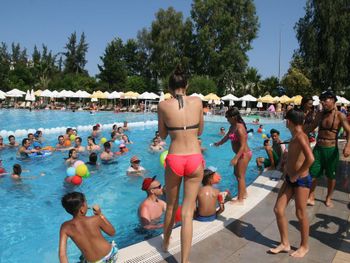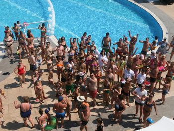 Бассейн не воняет хлоркой, хорошое питание, хорошое выпивка, отличный аквапарк, и есть клуб для детей