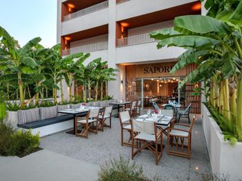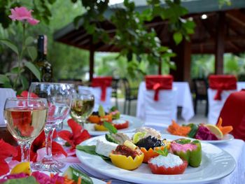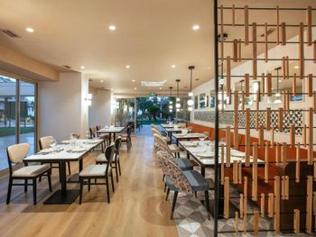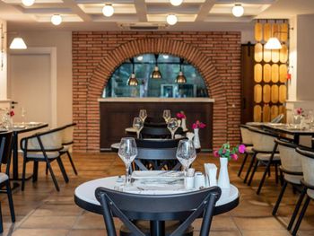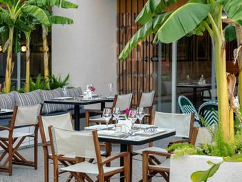 Кондиционер работает исправно. Бассейн чистый. Еда вкусная, свежая, всего в достатке и всем хватает. Вино бутылочное, приятное, особенно белое. Расположение удачное - 5 минут пешком до центральной улицы со всеми магазинчиками и кафе.