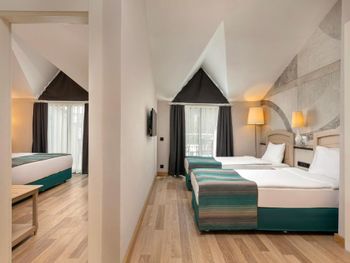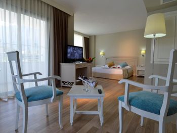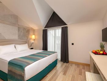 Отель за свои деньги отличный, еда разнообразная и вкусная, номера чистые и просторные, сдружились с барменами Salih и Кerem готовят лучшие коктейли и шоты во всем отеле. В аквапарке драйвовые горки. До моря идти 3 минуты пляж чистый и лежаки удобные.