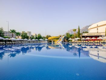 Понравилась территория, бассейн, пляж, всегда находили свободные лежаки. Водных горок достаточно, чтобы пару раз прокатится. по всей территории есть бары, и на пляже отдельный. В течении дня предлагают разного вида питание, голодными не останетесь. Пляж находится рядом, вход в море- мелкая галька, море чистое.