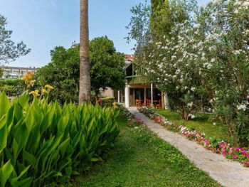 Много зелени и цветов. Понравилось наше бунгало с двухэтажной кроватью для нашей внучки и тихое расположение, вдали от шума музыки ночью. Отель находятся на второй линии ,вода в море чистая, пляж песчано- галечный. Все понравилось.