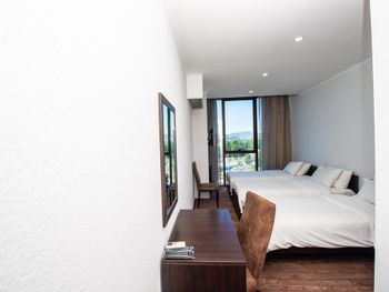 Красивый вид из номеров на горы. Панорамные окна. Удобный матрас. Чистый номер, полотенца, постельное белье. Хороший отель особенно за свою цену.