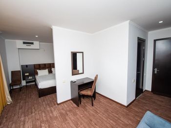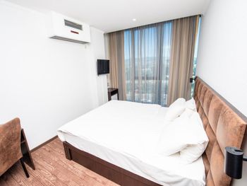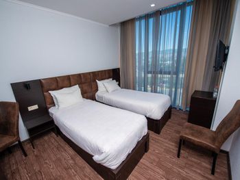 Хороший номер. Панорамное остекление с видом на город и горы. Был балкон. В номере все было чисто. Персонал очень дружелюбный и участливый. Есть лифт. Недалеко от метро. Мне завтрак включенный в стоимость очень понравился (Разве что не было каши). Есть возможность поужинать в отеле за отдельную стоимость(20 лари), правда я не успел ей воспользоваться.