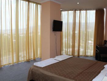 Из минусов хотелось бы выделить: скрипучие кровати, грязные панорамные окна, нет ни одного крючка в ванной комнате (даже для полотенца), нет ни одного канала по ТВ на русском языке.