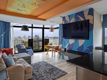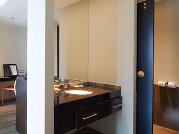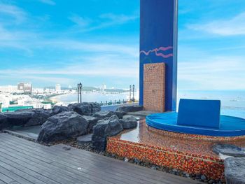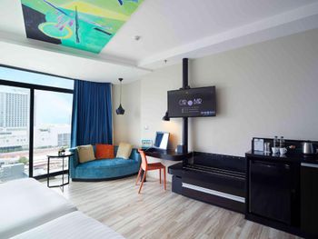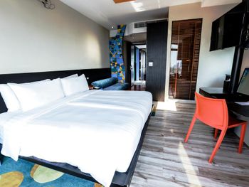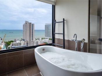 Уже староватая мебель и само здание. Практически нет двери в туалет, есть шторка и выдвигающаяся дверка вся в дизайнерских дырах как швейцарский сыр)) Раковина прямо в комнате, визуально отгорожена изгибающейся дизайнерской конструкцией, об которую мы пару раз ударялись пальцами ног.. Размещение отеля в очень шумном месте - в один из вечеров в соседнем отеле дубасила индийская музыка на весь квартал так, что через закрытую дверь балкона на 18 этаже казалось, что дискотека прямо у нас в номере. Добраться до отеля на машине проблематично, т.к. перед въездом на парковку односторонняя улица и чтобы приехать в отель, нужно ехать в объезд полцентра Паттайи. Цена черезчур завышена, отель не стоит таких денег!