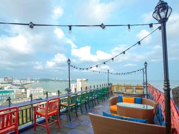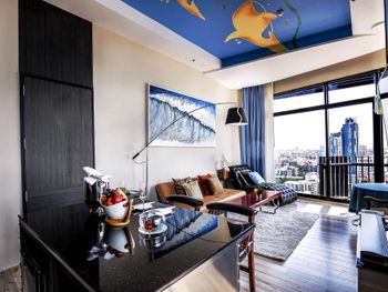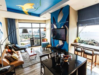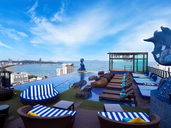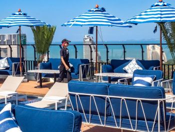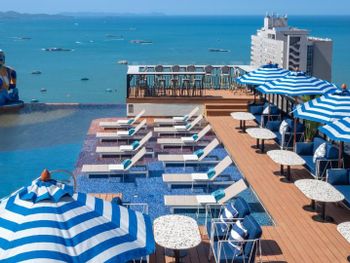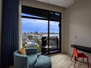 Потрясающий вид с крыши, теплый бассейн и хороший бар. На этаж ниже есть еще один бассейн для тех, кто любит поплавать в тени. Номер предоставили на последнем этаже и было видно фактически весь город. До пляжа несколько минут пешком. Пляж без инфраструктуры. В дневное время отлив и поплавать не получится. До терминал21 минут 10. До других локаций тук-тук за 10 бат с человека.