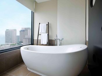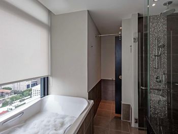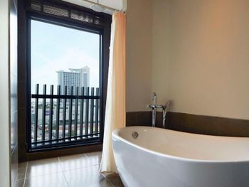 Просторные номера со всем необходимым. Два инфинити бассейна на крыше с шикарным видом на пляж и город. Отличный и разнообразный завтрак. Персонал доброжелательный и пошел навстречу по оплате наличными на месте. Расположение неплохое (рядом централ Марина, терминал 21, вечерний рынок фруктов, бар Хэратс с русской едой, обменники ТТ и тд).