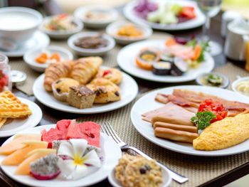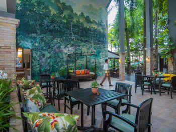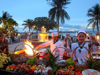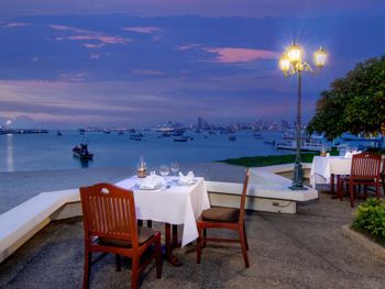 В круглосуточном ресторане Sunrise Sunset подают блюда интернациональной кухни и завтрак «шведский стол». На территории отеля работают тайский ресторан Siam Elephant, китайский и рыбный ресторан Bali-Hai и ресторан морепродуктов BBQ Terrace. Напитки можно заказать в одном из 4 баров отеля.