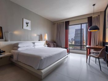 Come and stay with us and discover how our creative design meets our playful soul in the heart of Thailand’s capital. Located on Sukhumvit Road in the Siam neighbourhood in Bangkok’s buzzing city centre, our boutique hotel and vibrant restaurant scene is within easy walking distance to the National Stadium BTS station, so you’re just minutes away from world-class shopping at Siam Paragon, CentralWorld, and MBK Center. Explore the eclectic local culture with a stroll through the lively neighbourhood streets filled with street food vendors, chic boutiques, and art galleries.