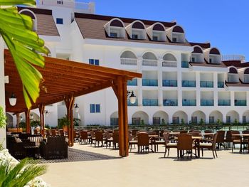 Отель Side Crown Serenity All Inclusive располагается в 11 км от гавани Сиде и от Театра Сиде, тогда как расстояние до аэропорта Антальи составляет 44 км.Расстояние, указанное в описании, рассчитано с помощью © OpenStreetMap
