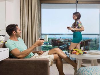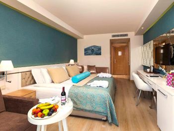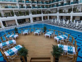 Почувствуйте себя знаменитостью благодаря великолепному сервису в Castival HotelCastival Hotel — это отель с 5 звездами на первой линии города Сиде. В распоряжении гостей сезонный открытый бассейн, фитнес-центр и сад. В числе удобств — доставка еды и напитков и ресторан, а также аквапарк и терраса для загара. Гости могут обратиться к сотрудникам круглосуточной стойки регистрации, воспользоваться трансфером от/до аэропорта или детским клубом, а также подключиться к бесплатному Wi-Fi на всей территории.