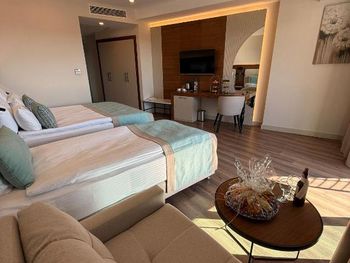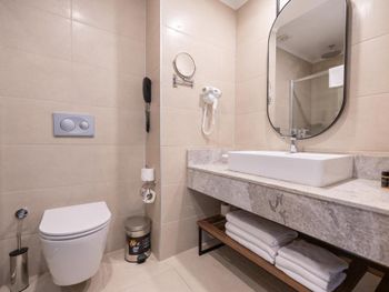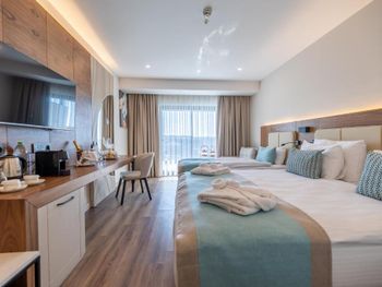 В номерах Side Moon Palace Hotel установлен кондиционер, сейф и телевизор с плоским экраном. Среди прочих удобств — платяной шкаф, чайник и мини-бар, а также собственная ванная комната с биде. В собственной ванной комнате есть душ, бесплатные туалетно-косметические принадлежности и фен. Гостям Side Moon Palace Hotel предоставляются постельное белье и полотенца.